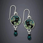 Vintage Drop Earrings with Tropical Black Cat