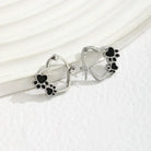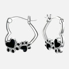 Celebrate your beloved furry companion with these heartfelt hoop earrings featuring paw prints. Each pendant showcases delicate paw prints embracing a heart, crafted in a shiny silver finish with striking black enamel accents. A meaningful way to keep the love of your pet close, whether they are by your side or forever in your heart.